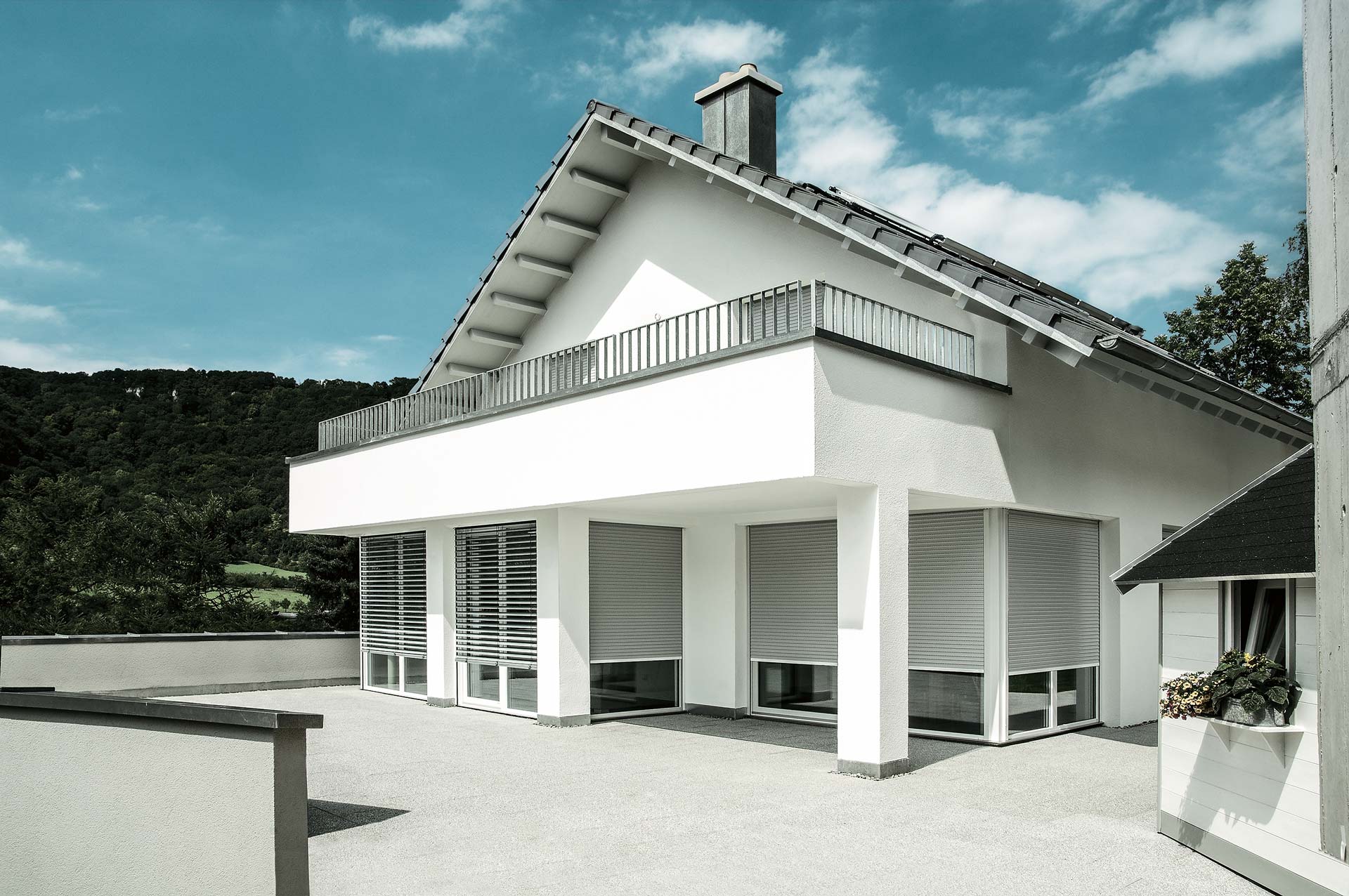 Durch verschiedene Sonnenschutzsysteme wie Markisen, Plissees, Rolladen, Textilscreens und Raffstore wird die Sonne vom Inneren des Hauses fern gehalten, das Haus heizt sich nicht auf. Die Systeme sorgen außerdem für Blickschutz. Rolläden bieten zusätzliche Sicherheit. Besonderes Merkmal der Textilscreens ist ein schlichtes und elegantes Design. Raffstore (Lamellenbehänge) haben die Besonderheit, sich individuell „kippen“ zu lassen.